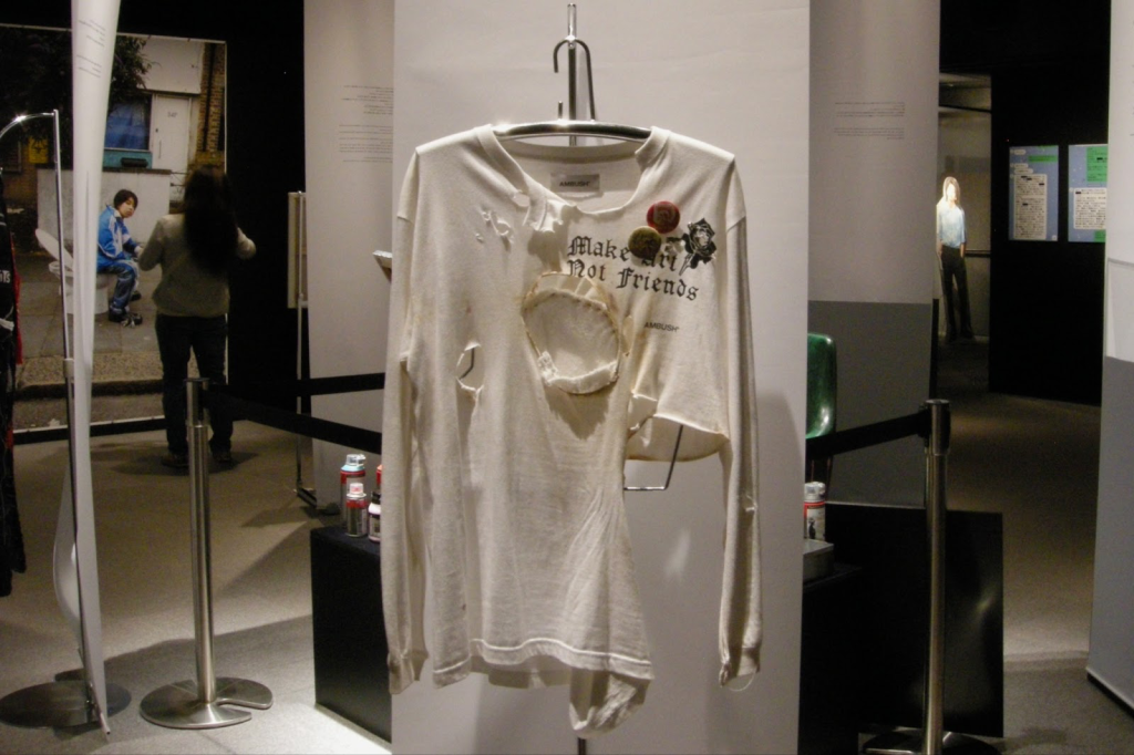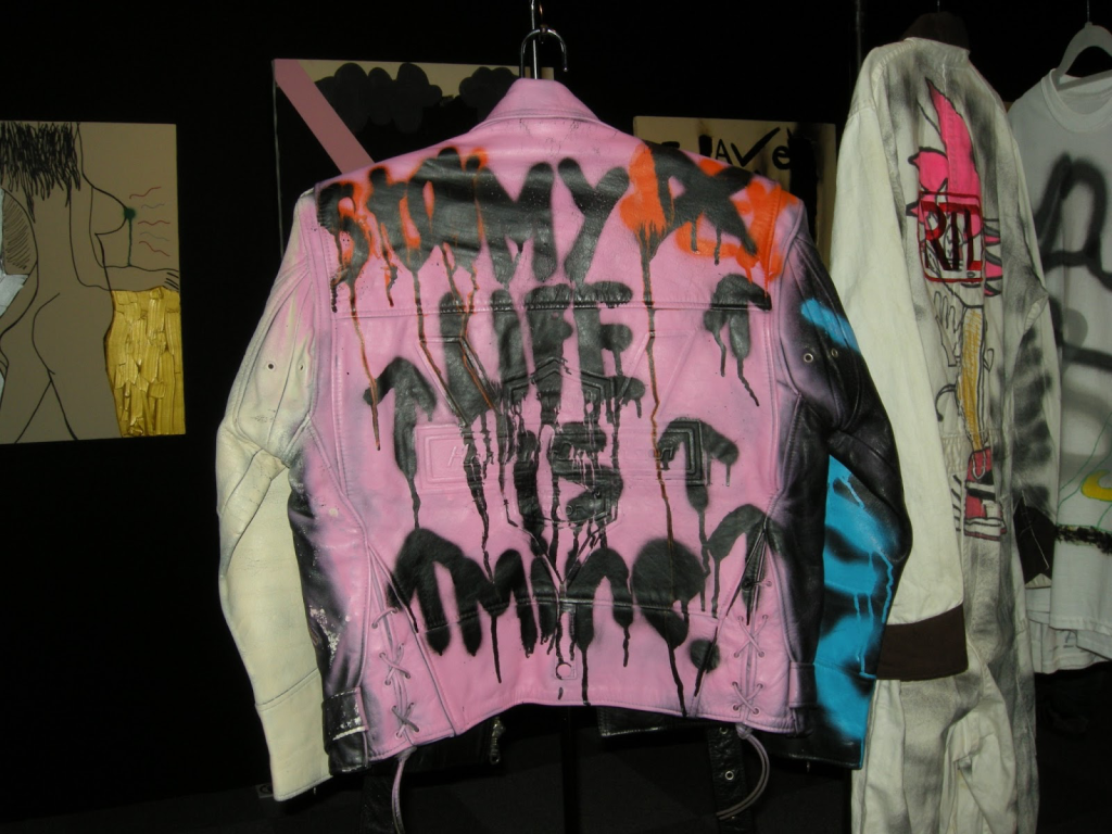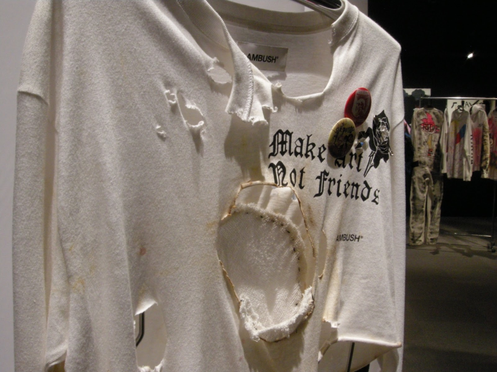 今回の展示にもあったAMBUSHの何万円もするTシャツ。YOSHIくんはそれを躊躇なく燃やして、「こっちの方がかっこいいでしょ」って。缶バッチをつけたり、別の生地を縫い合わせてみたり。誰かが作ったものをただそのまま着るんじゃなくて、自分なりに手を加えて、自分のモノとして落とし込むんですよね。