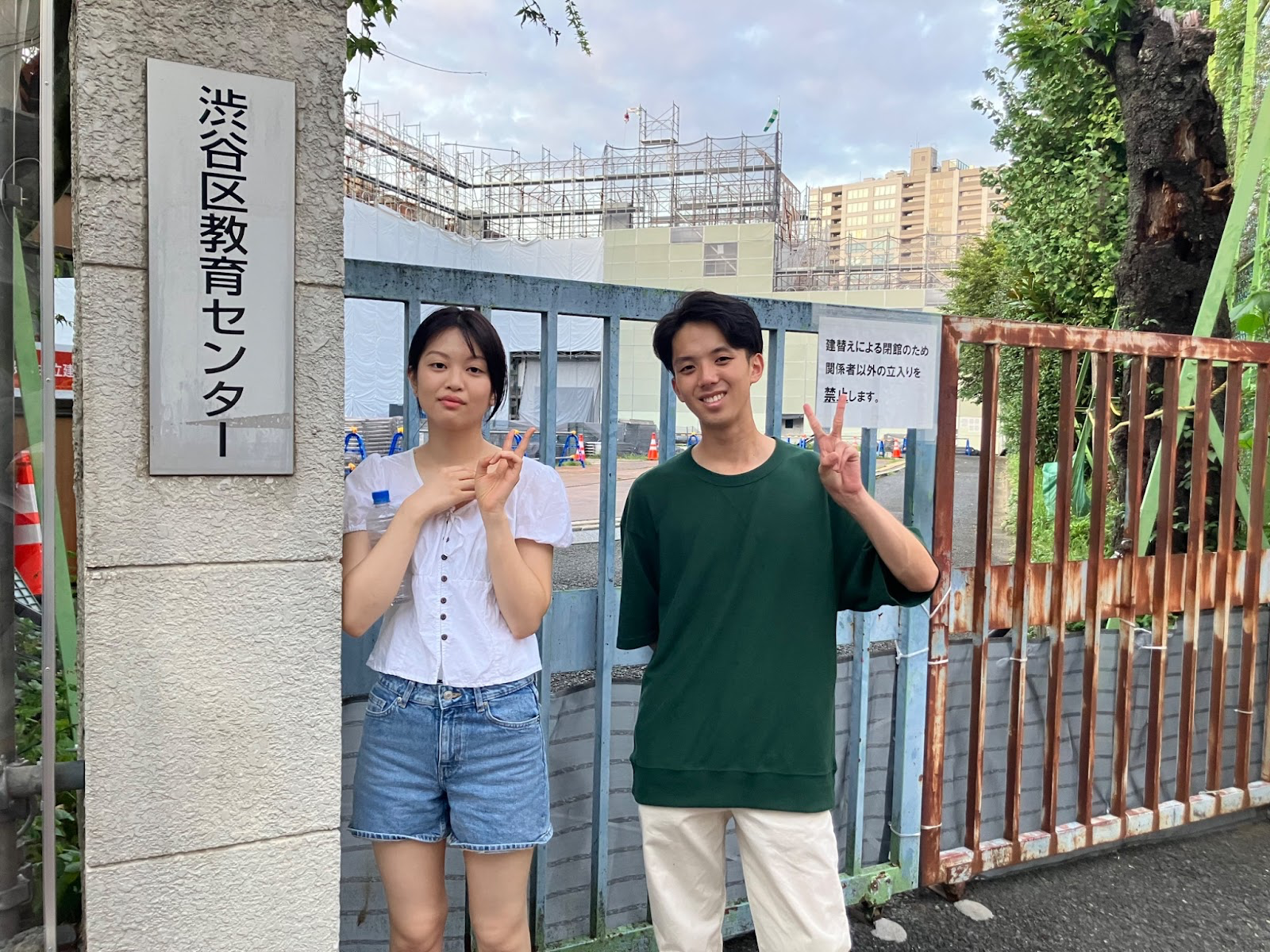 その後、はながかつて通っていた「旧ケアコミュニティ・原宿の丘」(神宮前3-12-8)に立ち寄りました。ここは、中学時代に学校に通えなかったはなが毎日足を運んでいた思い出の場所で、現在は工事中のため立ち入り禁止でした。もともとは原宿中学校の校舎で、長谷部区長もここの卒業生です。