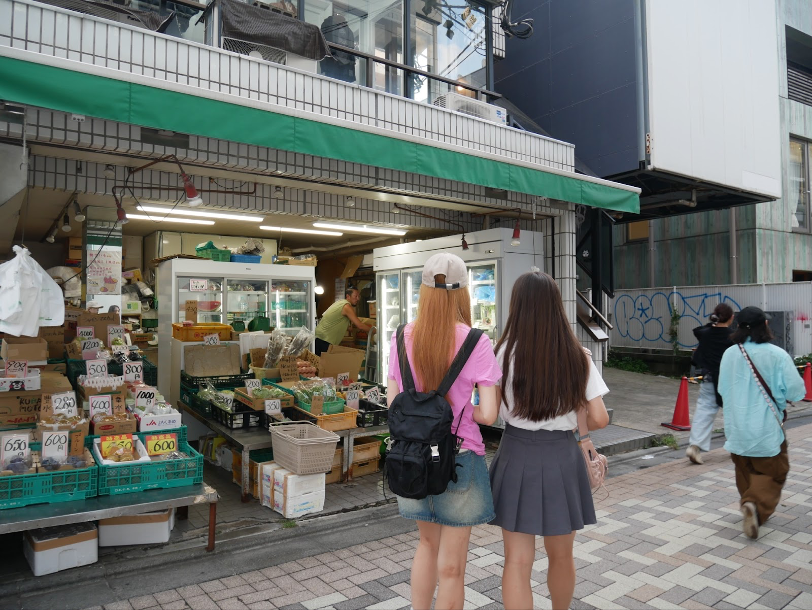 キャットストリートをまっすぐ表参道方向に進むと、八百屋さん「松本青果」(神宮前6-14-1)を発見!ゆいちょことあゆぱは、原宿にこんなにローカルなお店があるんだ!と感動していました。