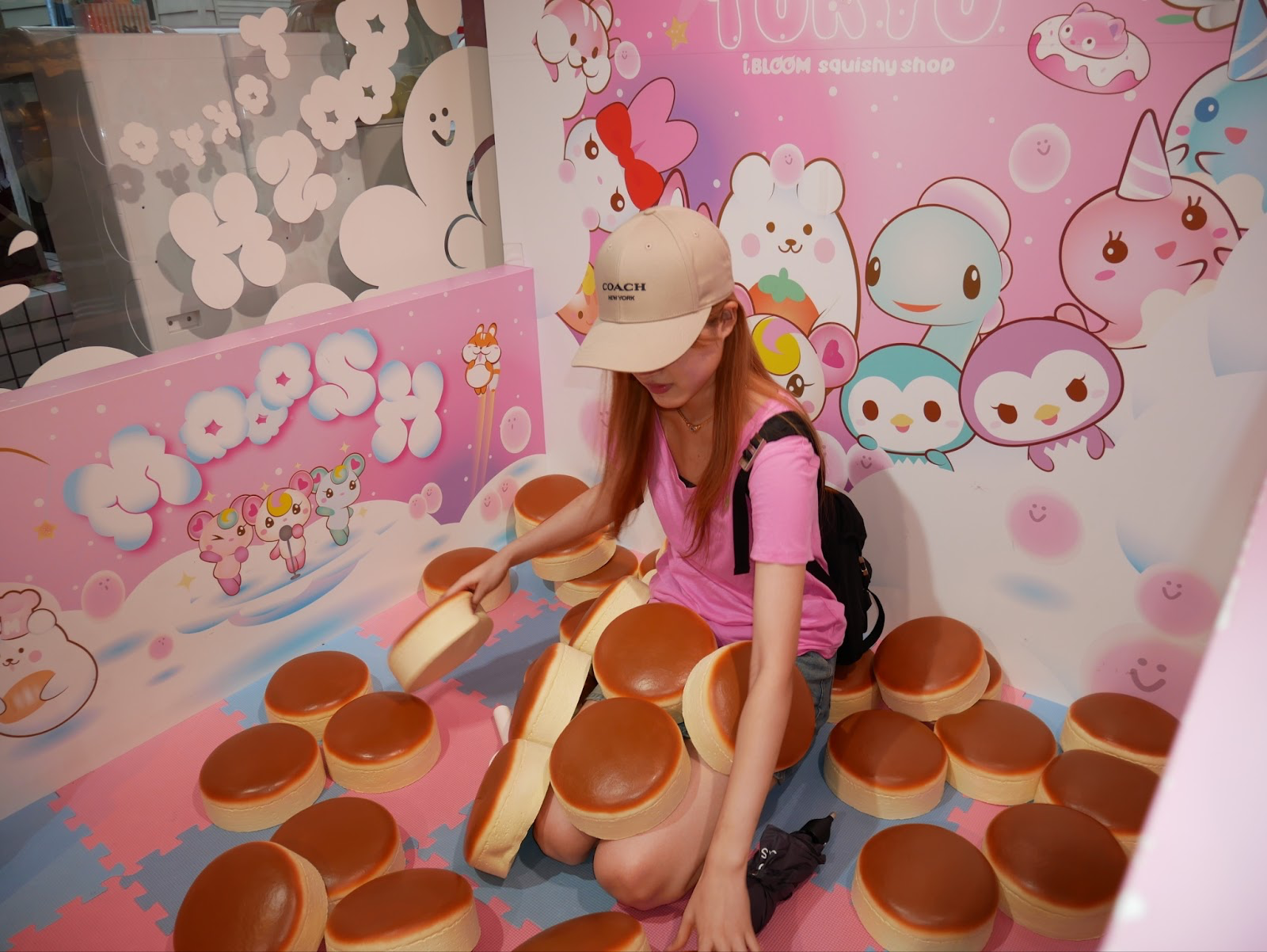 入店前から「懐かしい!やばい!」と大盛り上がり。お店に入ると、スクイーズの甘い匂いで幼少期の思い出がフラッシュバック。大興奮のあゆぱは、気付けばスクイーズ風呂にいました…