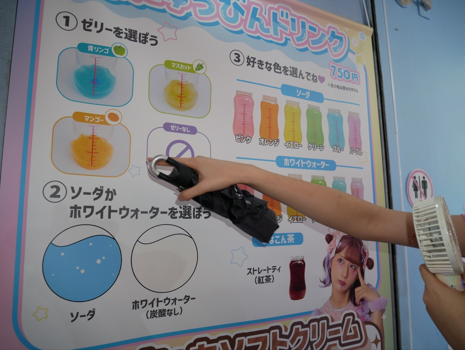 群馬で育ったあゆぱは、小学生の頃、毎日のように「どの組み合わせにしようかな」と考えていたほど、ほにゅうびんドリンクに憧れていたそう。今回は時間の都合で購入はできませんでしたが、目を輝かせながらメニューを見ていました。