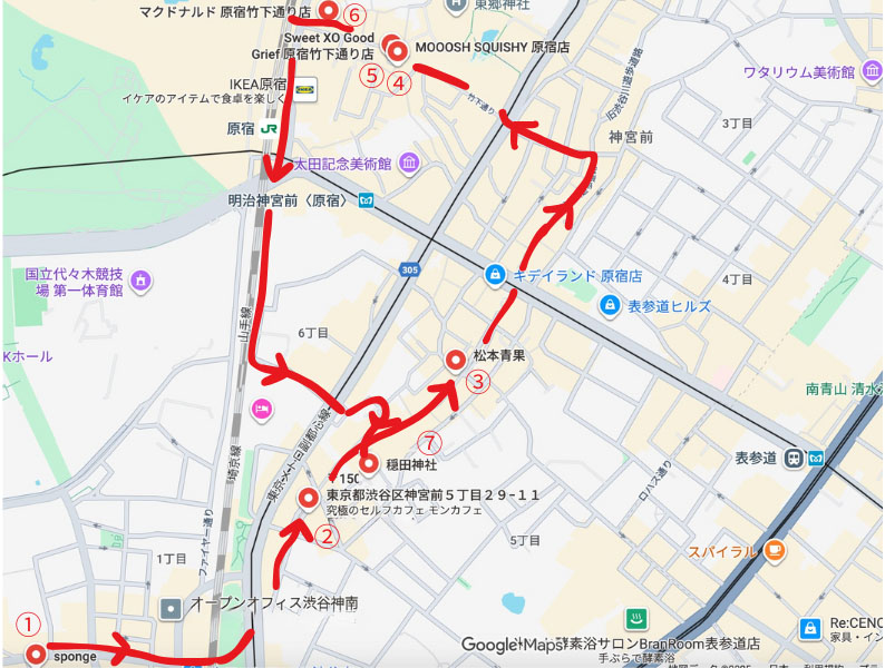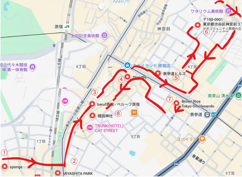 ◉ チームC:明治通りから竹下通りへ(メンバー:おおはる・なお・さとこ)