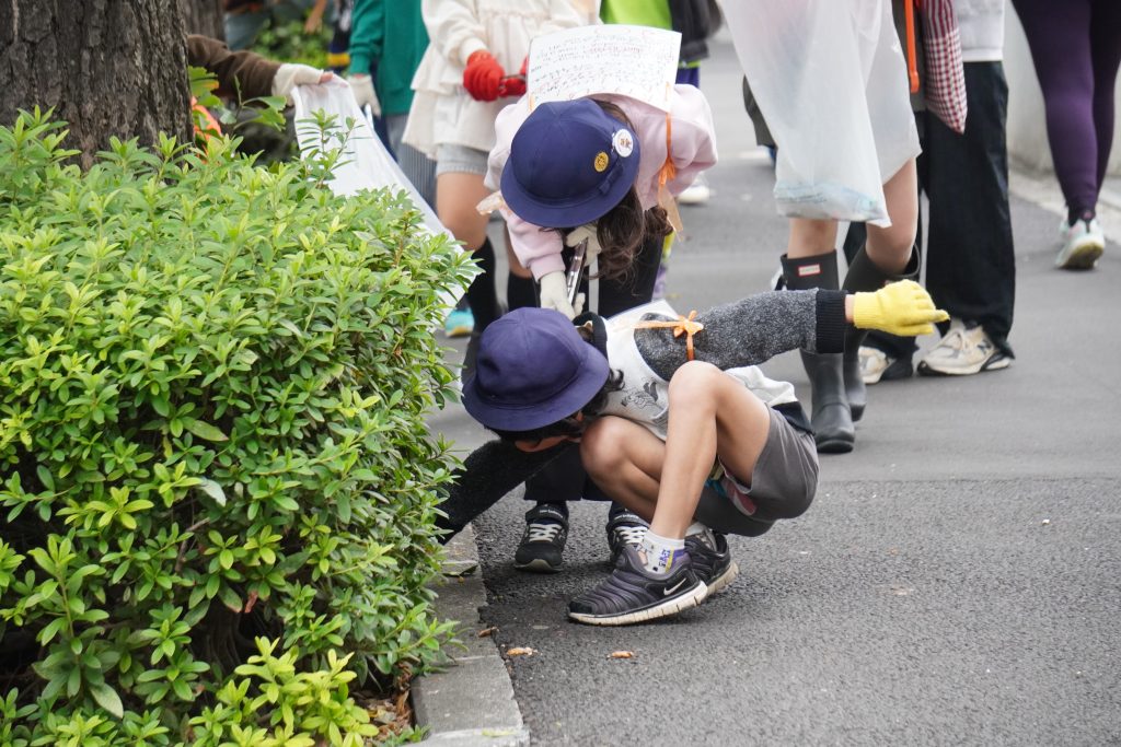 竹下通りでは、特にたばこの吸い殻が多く見られ、子どもたちは植木の中やアスファルトの隙間にまで目を凝らしながら、ひとつひとつ丁寧に拾っていきます。