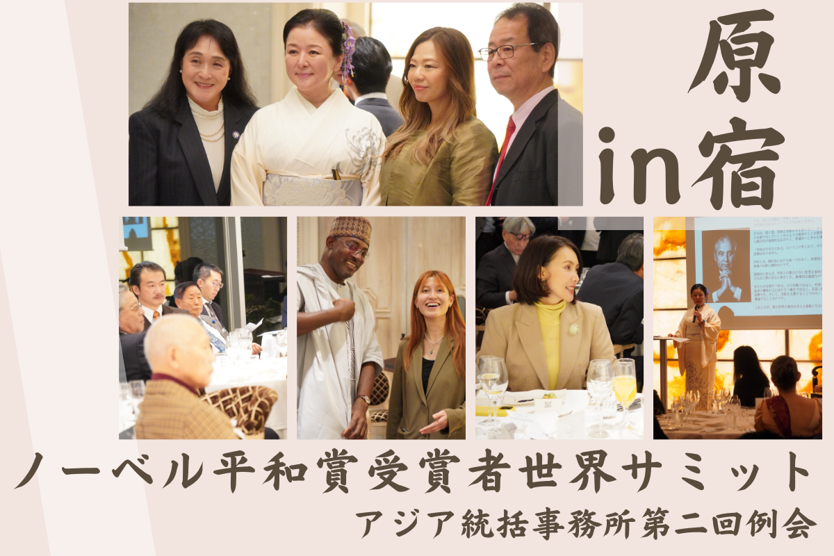 「平和なくして経済なし」ノーベル平和賞受賞者世界サミット アジア統括事務所例会にて原宿の父・八木原保氏が語ったサミット東京開催への想い