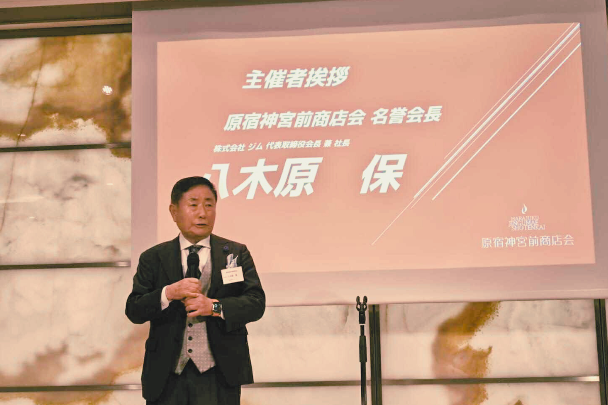 会場は、地元の顔役のみなさんのパワーで溢れかえっていました。 名誉会長の八木原保さんのお話では、いま原宿を歩いている人の約8割が外国人観光客だとか!銀座を抜いて、「行ってみたい街1位」に選ばれたというニュースもあり、世界中から注目される街としての誇りと、さらに盛り上げていこうという熱い想いを感じました。