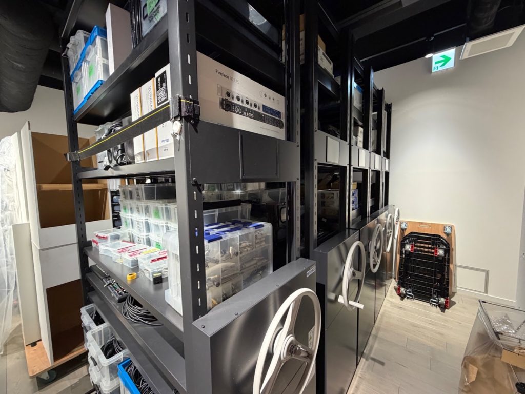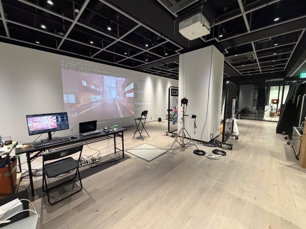 移転前は渋谷の公園通り沿いに拠点を構えていたCCBTですが、新拠点の地下1階には洗練された展示空間……ではなく、無骨な機材や作業デスク、試行錯誤の痕跡が刻まれた「制作の現場」が広がっています。
