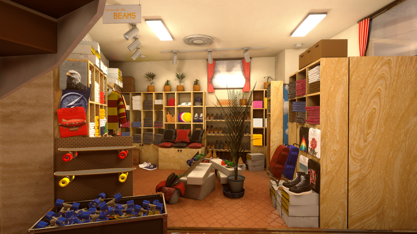 ▲1976年原宿の6.5坪の店舗「American Life Shop BEAMS」を再現
